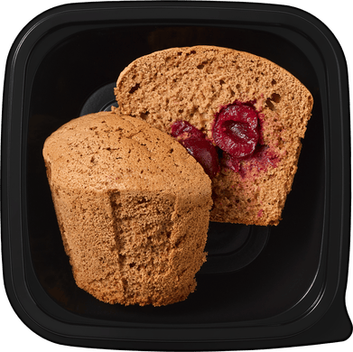 Нежный маффин с цельными ягодами вишни внутри. Ароматный десерт, с шоколадной ноткой.