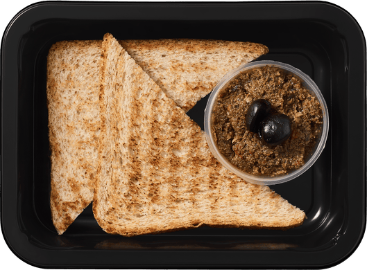 Насыщенная закуска — овощная икра из вяленых томатов, маслин и каперсов. Подаётся с тостами, хрустящими хлебцами или цельнозерновым хлебом на выбор.