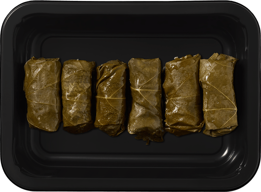 Традиционное блюдо кавказской кухни — долма с постной говядиной и рисом в виноградных листьях. Подаётся с соусом на выбор: гранатовым или йогуртовым.