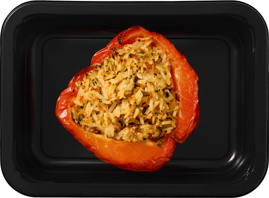 Запечённый болгарский перец с ароматной начинкой из риса, моркови, лука и цуккини. Полезное и сытное блюдо без мяса.