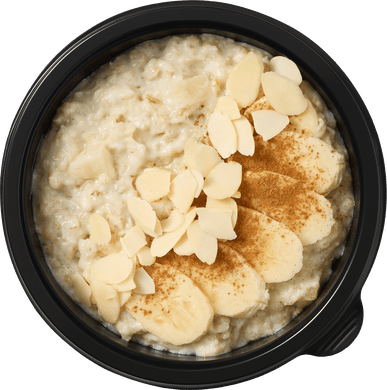 Мы готовим кашу из двух видов хлопьев различной степени мягкости и овсяных отрубей. Благодаря такому «коктейлю» у каши получается особенная, объемная текстура, не слишком плотная, но и не размазня. Бананы и клубнику, которые мы добавляем в кашу, не проходят термическую обработку. Это позволяет сохранить их вкус и пользу.