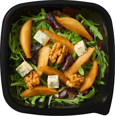 Сыр рокфор, мангольд, руккола, грецкие орехи, мёд.