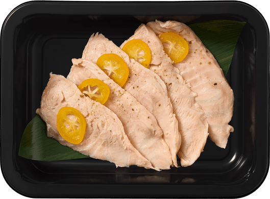 Филе лосося, кумкват*, апельсин, лимон, соль, перец зеленый горошек*.