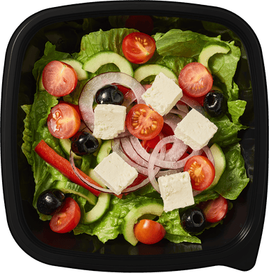 Черри*, свежий огурец, салат романо, болгарский перец, сыр фета, маслины*, красный лук*.