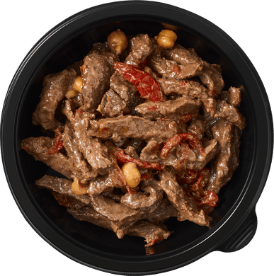 Постная говядина, нут, вяленые томаты*, соевый соус, растительное масло, вустерский соус, чёрный перец*.