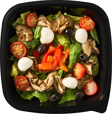 Черри*, баклажан, моцарелла, салат романо, печен ый болгарский перец*, маслины*, руккола*, оливковое масло, специи*.