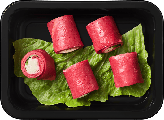 Лёгкая диетическая закуска: нежные свекольные роллы с творожным сыром и мини-шпинатом. Секрет роллов в том, что при приготовлении блинчиков мы заменяем муку порошком сушенной свеклы. Это позволяет снизить количество углеводов и придает роллам красивый свекольный цвет.