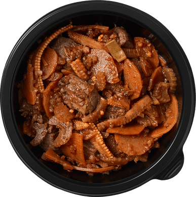 Говядина, красное сухое вино, морковь, стебель сельдерея, репчатый лук, томаты, мини-кукуруза, кус-кус, соевый соус, чеснок, растительное масло, тимьян, розмарин.