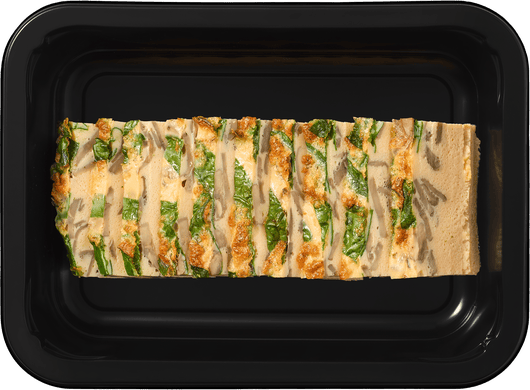 Яйцо, безлактозное молоко, шампиньоны, мини-шпинат, растительное масло, соль*, специи.