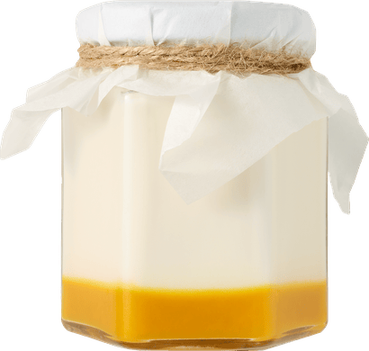 Термостатный йогурт, который мы готовим из соевого и кокосового молока с добавлением живых бифидобактерий. Натуральный состав, нежная текстура и пюре из манго в качестве первого слоя.