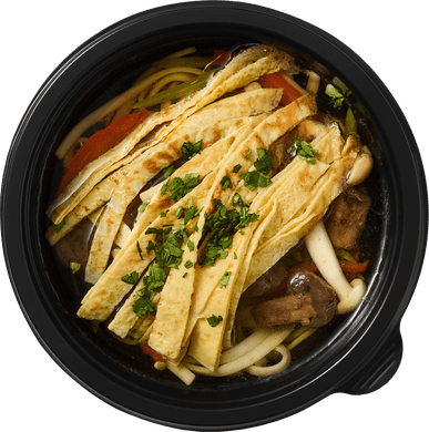 Это блюдо состоит из лапши с овощами и овощного бульона, который мы сервируем отдельно. Варьируя количество бульона, вы можете получить сочную лапшу или густой суп. Это блюдо с высоким рейтингом: его выбирают 65% наших клиентов.