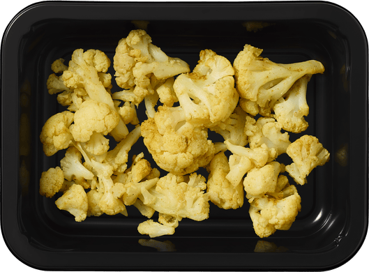 Цветная капуста, карри, зира молотая*, корень и мбиря, оливковое масло, соль*.