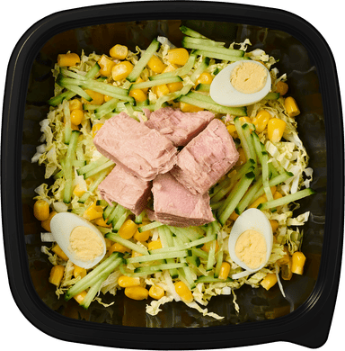 Тунец конфи, свежий огурец, китайская капуста, зёрна кукурузы*, перепелиное яйцо*.