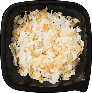 Тончайшие слайсы цветной капусты с легким цитрусовым соусом и миндальными лепестками. Блюдо подается самостоятельно или с ломтиками пармезана.
