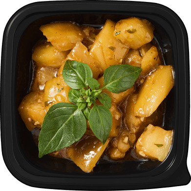 Баклажан, виноградный уксус, соевый соус, устричный соус, растительное масло, кинза*, кунжутное масло, имбирь, зеленый лук*, кресс-базилик*, чеснок.