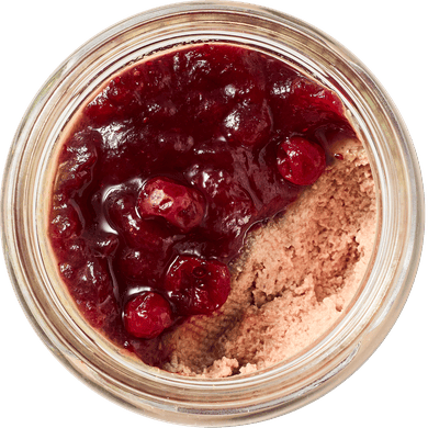 Нежный паштет из куриной печени с добавлением брусничного соуса.