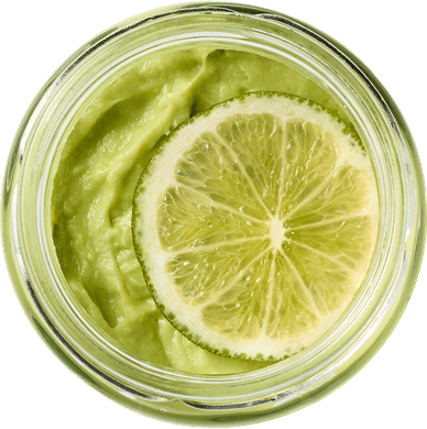 Авокадо, сок лайма, лайм, розовая гималайская соль*.