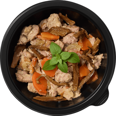 Теплое и насыщенное блюдо с французскими нотками. Нежное мясо кролика, белые грибы, овощи и тонкий соус на основе настоящего португальского портвейна. Блюдо дополнено ароматными сморчками - уникальными грибами, которыми нас балует короткое карельское лето.