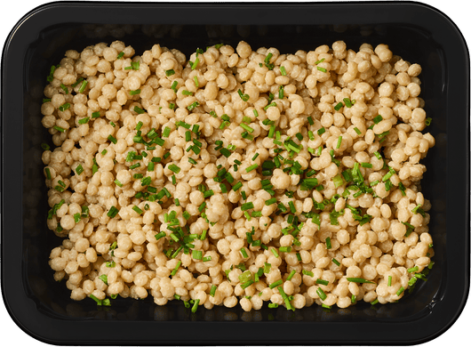 Птитим - мелкая паста из твердых сортов пшеницы, сваренная до состояния аль-денте. Солодовый соус — насыщенный, с легкой карамельной ноткой и глубоким вкусом, приготовленный на основе ржаного солода и сливок. Отличный гарнир для мяса или самостоятельное блюдо.