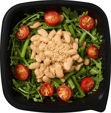 Белая фасоль*, черри, кенийская фасоль, руккола, грецкие орехи*, базилик*.