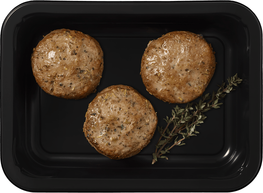 Постная говядина, репчатый лук, безлактозное молоко, яйцо, хлеб, оливковое масло, соль*, тимьян*, чёрный перец*.