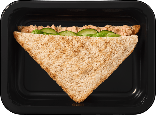 Хлеб тостовый с отрубями, копчёный лосось, творожный сыр, свежий огурец*, салат романо.