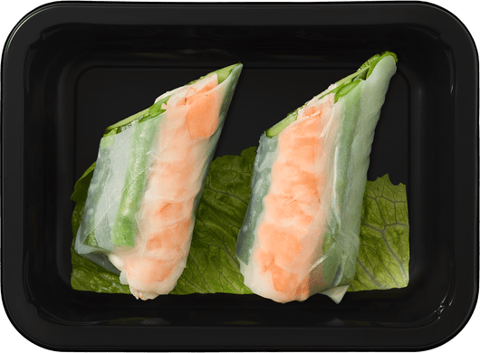 Креветки, спаржа свежая*, свежий огурец*, салат романо, рисовая бумага, творожный сыр.