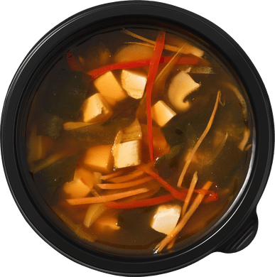 Лёгкий бульон на основе мисо пасты с водорослями вакаме, тофу и овощами. Классика японской кухни.